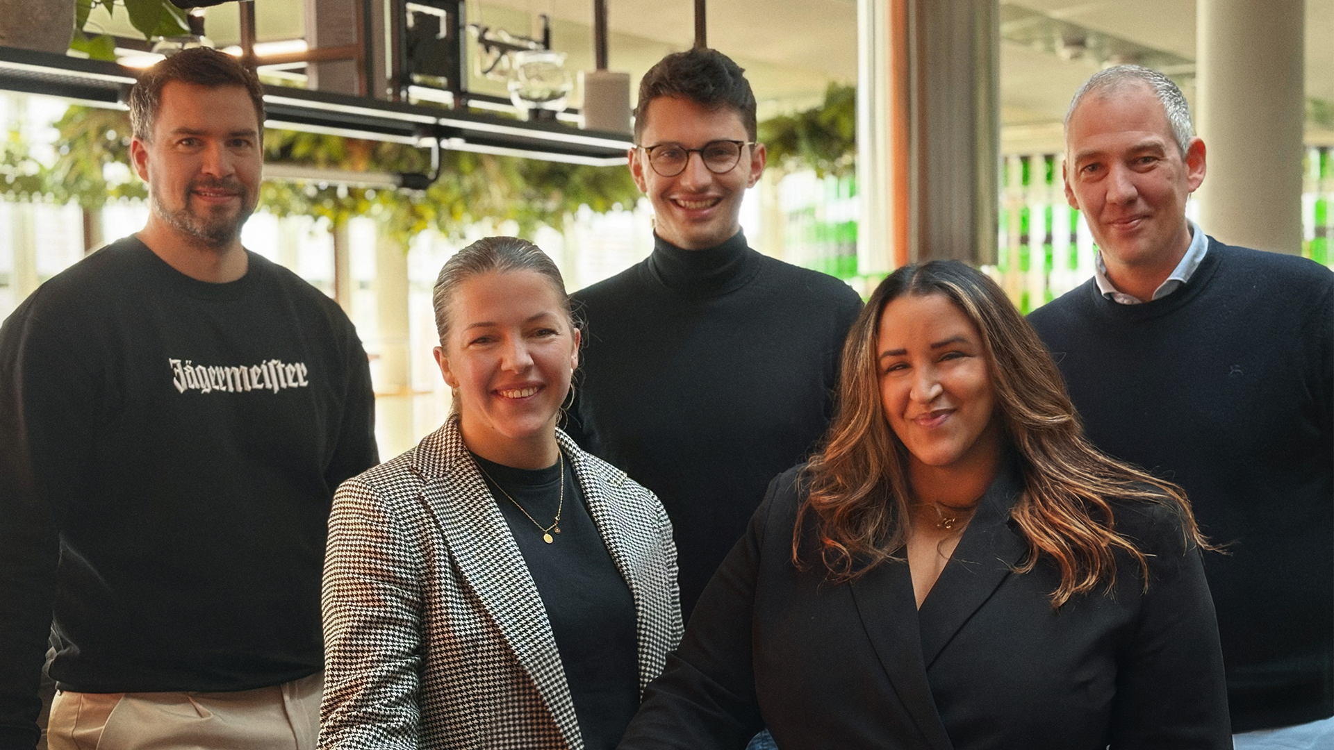 v.l.n.r. Paul Ramser (Director Brand & Digital Marketing Jägermeister), Maja Mierisch (Brand Manager Jägermeister), Kai Seidel (Managing Director Serviceplan), Niat Asfaw Graça (Managing Director Serviceplan), Sebastian Koenen (Vice President Marketing Jägermeister Deutschland)
